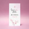 Die Save the Date Karte aus der Serie „Kirschblüten Design“ wirkt durch Ihre Aquarell gemalten Kirschblüten sehr natürlich und liebevoll.